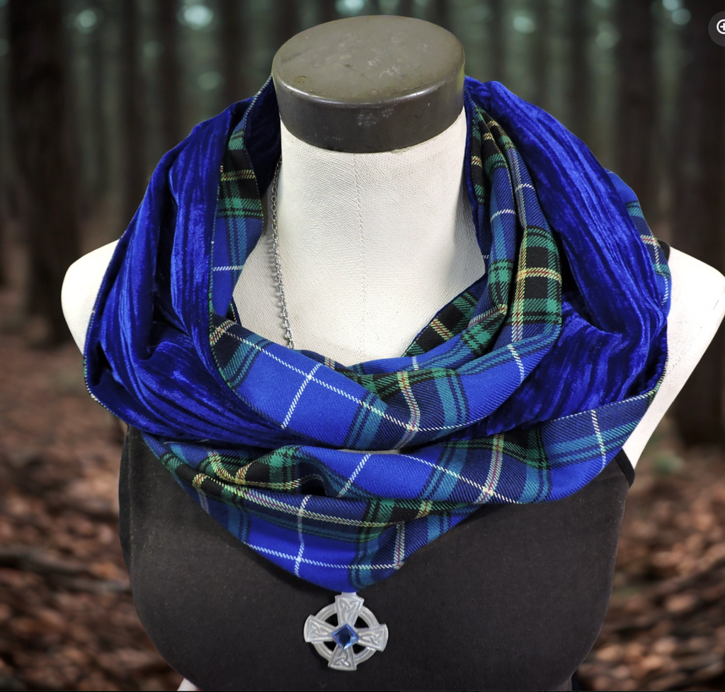 Our unique tartan Infinity Scarf is crafted using poly/viscose twill weave tartan and is lined with luxurious crushed velvet. Let us choose a coordinating velvet for your tartan or leave us a note in your order, if you have a preference.