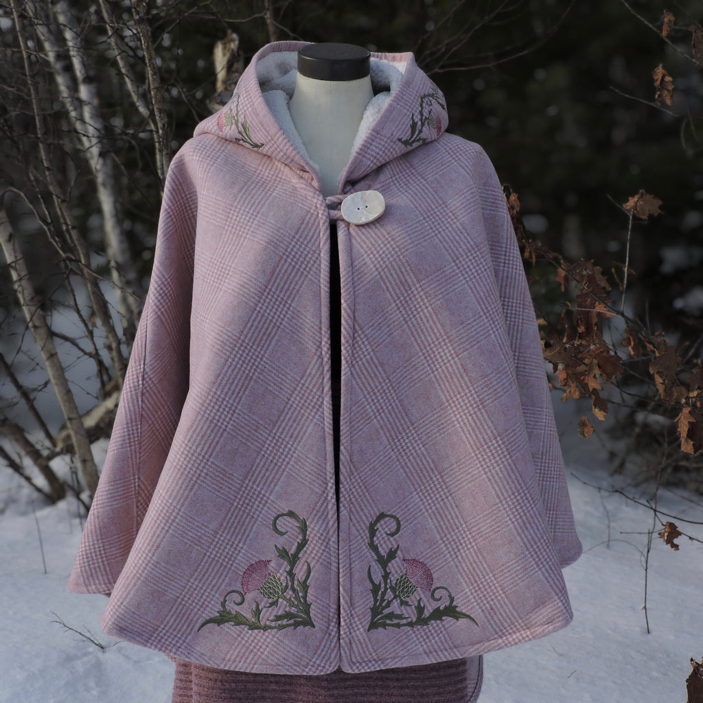 Variation in colour and design are available. Please contact us for details. Every Arran Cape is a unique custom order piece. Please allow 4-6 weeks for delivery.